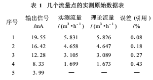 流量計(jì)廠家在出廠檢驗(yàn)**中都把實(shí)測的幾個流量點(diǎn)的原始數(shù)據(jù)以表1方式給出,從中可見實(shí)測的引用誤差都遠(yuǎn)遠(yuǎn)小于*大允許誤差。表1的EMF量程為6m³/h(100L/min),輸出電流為4~20mA;且在滿量程值50%以上的測量點(diǎn)精度較,而在滿量程值1/3以下測量點(diǎn)精度低。