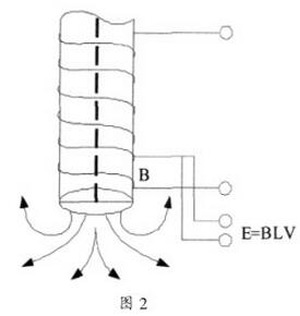 與一般污水流量計(jì)不同的是,插入式污水流量計(jì)的傳感器是外側(cè)形成外發(fā)射磁場,測量電極在傳感器的端部或兩側(cè)如圖2所示,值得注意的是,外發(fā)射磁場電磁流速傳感器的感應(yīng)信號受流體和磁場的邊界層厚度影響,會降低測量的線性度。