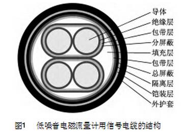 在石油化工、冶金、食品飲料、制藥、造紙、染料等眾多領域,通常采用污水處理流量計對流動的各種混濁、懸浮液體介質(水煤漿、泥漿污水、水泥混凝土漿、紙漿、金屬流體等)的流量進行測量。污水處理流量計用信號電纜主要用于將污水處理流量計的實際測量結果信號傳輸至顯示系統。隨著污水處理流量計測量系統中電路的日趨復雜和對信號傳輸要求的逐步提高,傳統污水處理流量計用信號電纜的性能已無法滿足使用要求,因此本公司開展了一種新型低噪音污水處理流量計用信號電纜的研制。