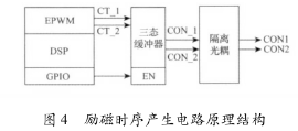 勵磁時序產生電路用于產生勵磁控制信號CON1和CON2以控制方波勵磁時序,其電路原理結構圖如圖4所示。