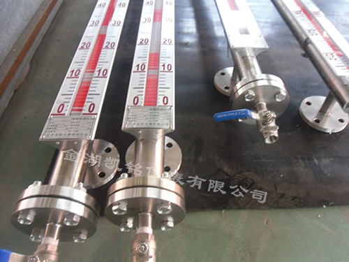 在管體的另一側(cè)可按用戶需要加裝電遠傳變送器,將液位高度轉(zhuǎn)換成標準電流信號輸出,以供液位信號輸出,以供液位信號遠傳至二次儀表進行指示控制與檢測。