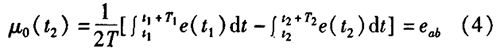 制藥廠污水流量計一般都采用工頻交流電源供電,其電源電壓的幅值和頻率的變化都會給制藥廠污水流量計帶來電源性干擾噪聲。對電源電壓的幅值變化,因采用多級集成穩壓,一般而言電源電壓的幅值變化對電磁流量的測量精度影響不大。當電源電壓的頻率波動時,雖然其波動范圍有限,但對制藥廠污水流量計測量精度影響較大。為了解決工頻干擾問題,實現對流體流速感應電勢e柚信號的準確測量,需利用以下基本關系:①勵磁周期為工頻周期的整數倍,即勵磁頻率為50/nHz(n為偶數);②正負勵磁下的同相位采樣。圖2是對應低頻矩形波勵磁形式下的典型電勢信號形式,按上述關系在一個勵磁周期下,若假設t。和t:點為工頻干擾的等效干擾點,且采樣寬度T=T1=T2,則e –ab的基本算式為:,