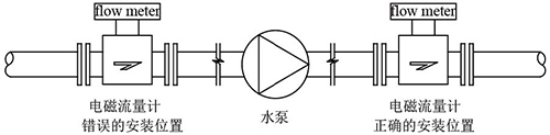 (1)流量計不得安裝在泵的抽吸側,如圖2 所示。