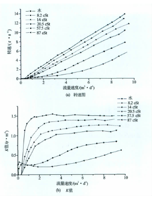 圖1甲醇介質流量計對不同茹度條件的響應轉速圖和K值