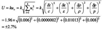 由此可見,當所用差壓計的精度為0.5級,量程為0~600kpa,預設差壓測景值為300kpa時,對于天然氣孔板流景計,置信概率為95%的測量總不確定度為: