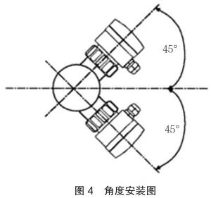 垂直安裝時確保流向由下而上,如圖 4 中箭頭所示,應與管道水平中心線成 45 度角安裝智能型電磁流量計