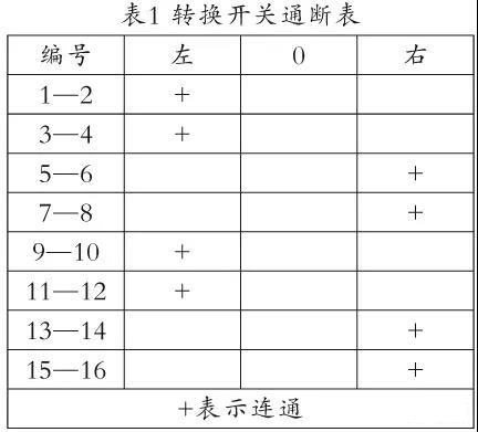 圖4是一款轉(zhuǎn)換開關(guān)的圖形和符號,表1是它在左旋和右旋兩個部位時8個開關(guān)對應的通斷情況。
