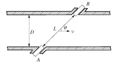 制藥廠污水流量計為獨立測量設備,由多個位于管線內壁的超聲傳感器組成。傳感器由緊固機械裝置插入管道中,超聲脈沖被 2 個傳感器交替地發射和接收。由于電磁在逆流和順流情況下的傳輸時間 tu 和 t d 不同,通過時差法可以計算得到流體流速,工作原理如圖 1 所示。制藥廠污水流量計還可以配置成雙向計量模式,精度不變。