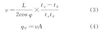 由式(1 ),( 2 )聯立推導出流體流速和流量的計算公式如下: